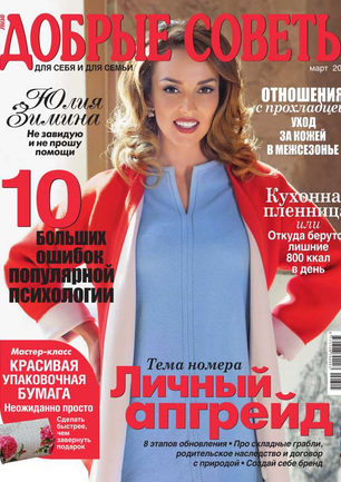 «Добрые советы» — это ежемесячный журнал для женщин. Его главные темы — секреты привлекательности, хорошего самочувствия, домашнего уюта и гармонии в отношениях с близкими. Каждый номер журнала открывает интервью со звездой — о ее личной жизни, профессиональных успехах, о доме, семье и детях. Журнал «Добрые советы» рассказывает обо всем, что интересует современную женщину. Стильные идеи и модные акценты. Новинки косметики. Меню здоровья и рецепты красоты. Дети и родители. Кошелек и карьера.